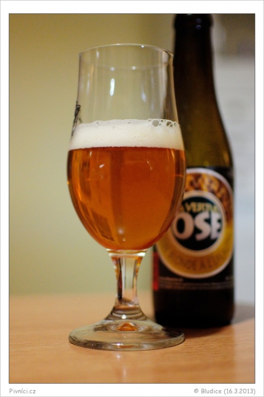 Zlatá barva, prakticky čiré, slušná bílá pěna, lehce kroužkuje.Vůně (4 - výborné):