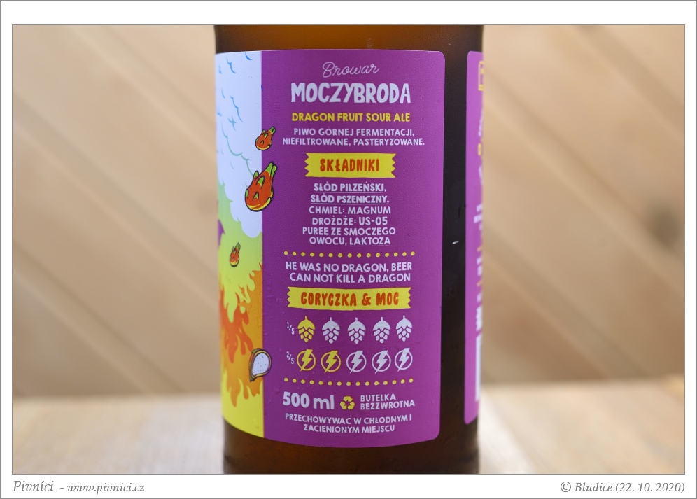 Vůně jemně nakyslá, lehce sladová a obilná, s tóny dračího ovoce.Chuť (3,5 - velmi dobré):