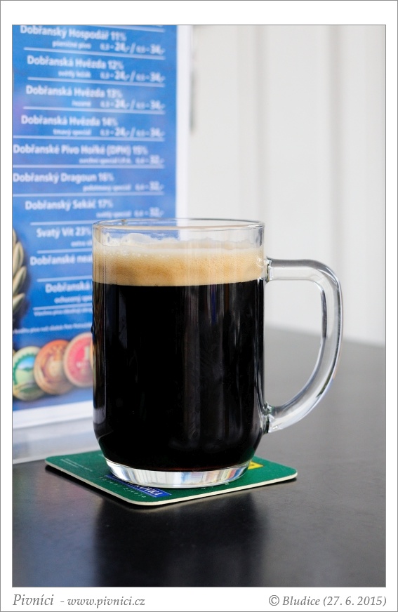 Velmi dobře pitelné tmavé pivo.Cena 24 Kč za 0,3 l
