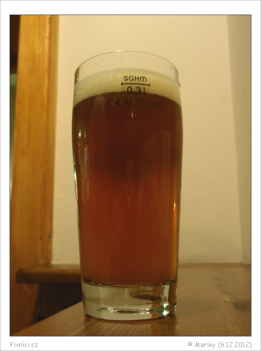 Barva měděná, zakalené. Pěkná hustá stabilní pěna. Kroužkuje.Vůně (3 - dobré):