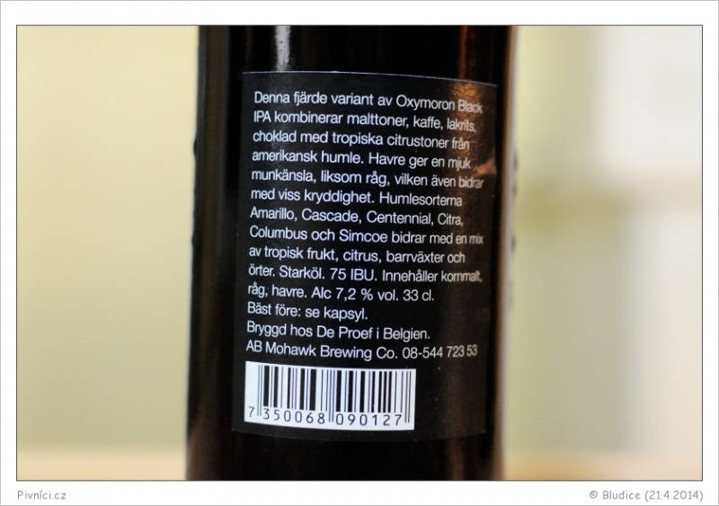 Výborná svěží a pěkně chmelená černá IPA.Minimální trvanlivost: 4.2.2016