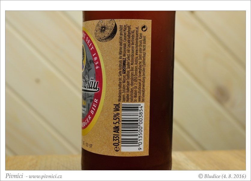Fajn ejl, dobře pitelný – takový american wheat.Minimální trvanlivost: 31. října 2016