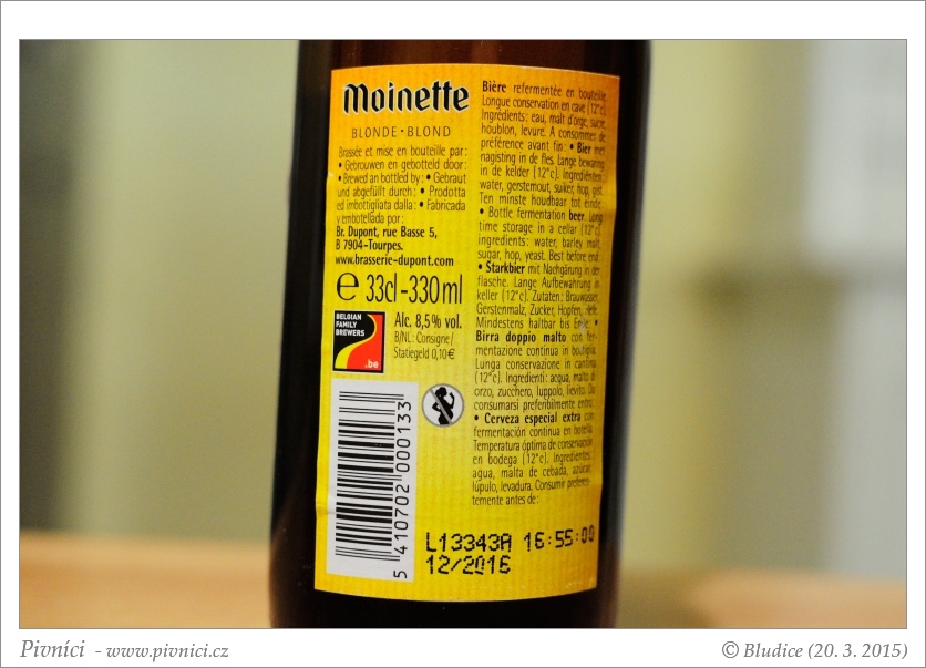 Příjemný silný světlý belgičan. Trochu náročnější na popíjení, ale velmi chutný.Minimální trvanlivost: 3/2015