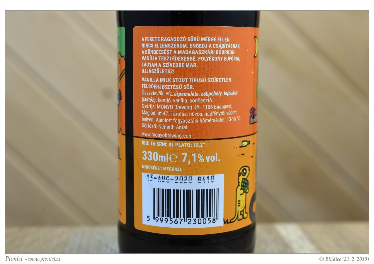 Výrazně vanilková líbivna, dobře se popíjí.Minimální trvanlivost: 13. srpna 2020