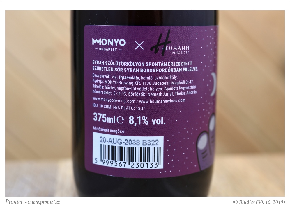 odkvasilo divokými kvasinkami ze slupek hroznů odrůdy syrah, zrálo rok v sudu po víně syrah z vinařství Heumann