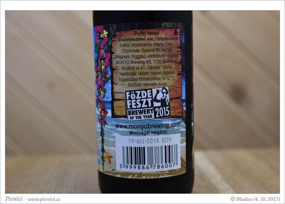 Chutný porter, velmi dobře se popíjí.Minimální trvanlivost: 19. prosince 2018