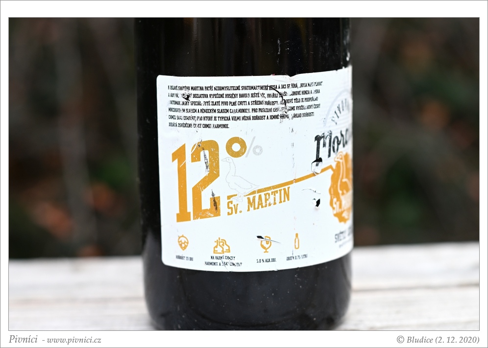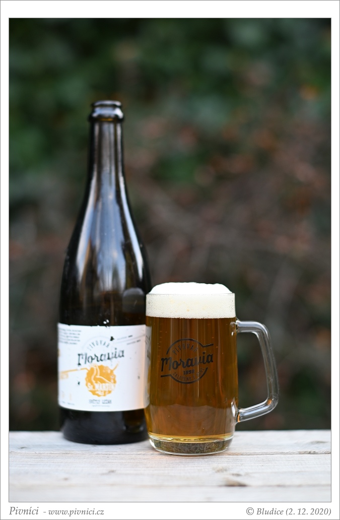 Zlatá barva, téměř čiré. Pěkná světlá pěna, dobře drží.Vůně (3 - dobré):
