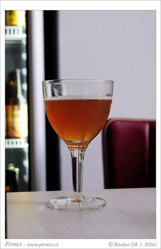 Zlatá barva, velmi lehce zakalené. Pěkná světlá pěna, velmi dobře drží, slušně kroužkuje.Vůně (2 - průměr):