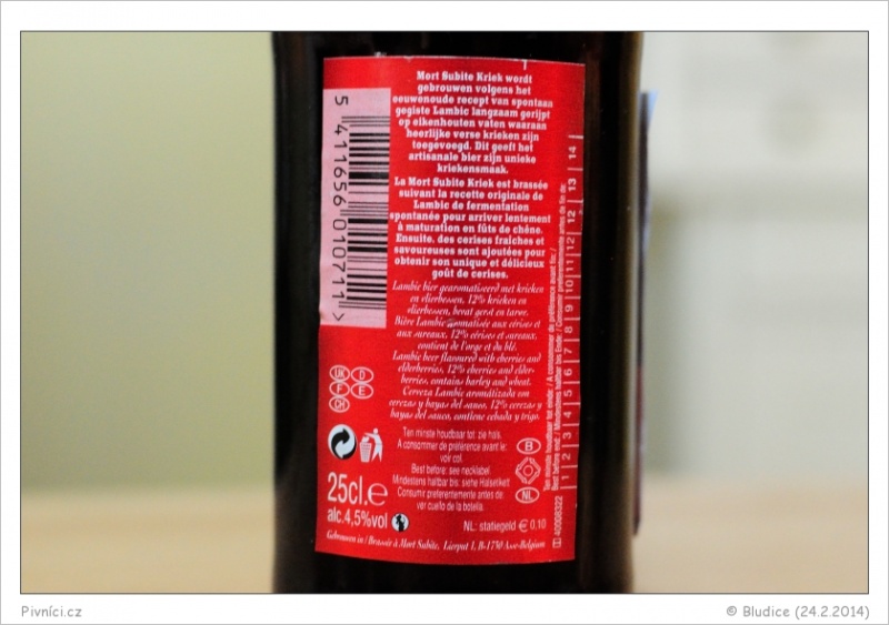 Vodovější a prázdnější kriek. Taková šťáva, ale alespoň není přeslazený.Minimální trvanlivost: 16.1.2015