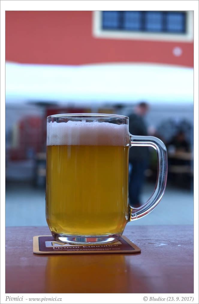 Barva světle zlatá, lehce zakalené. Pěkná hustá stabilní pěna.Vůně (2,5 - lehce nadprůměr):