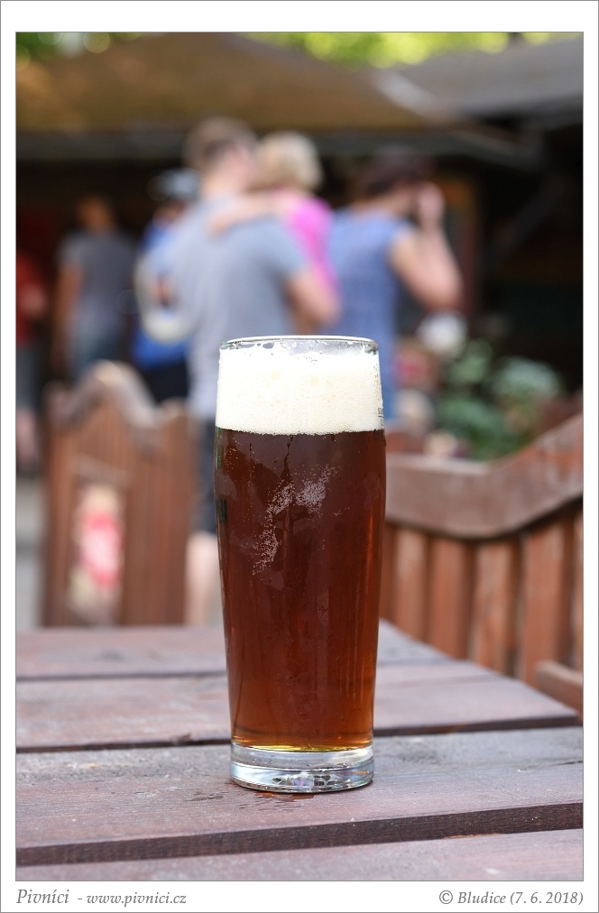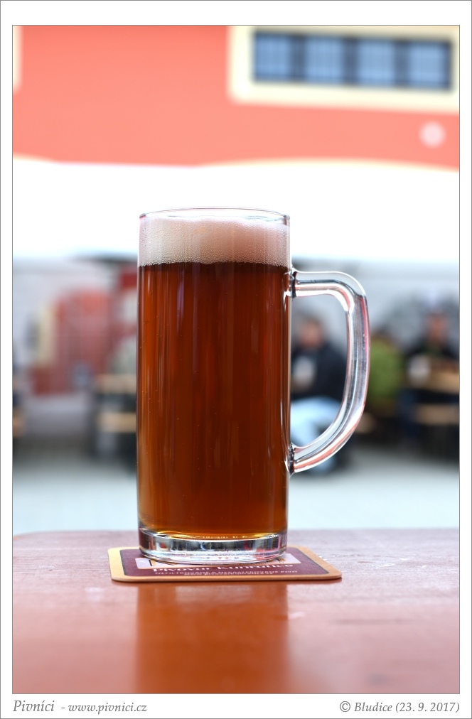 Tmavší měděná barva, téměř čiré, pěkná světlá pěna, dobře drží.Vůně (2,5 - lehce nadprůměr):