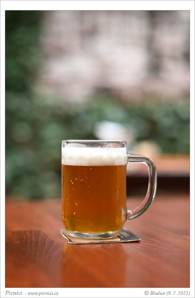 Zlatá barva, lehce zakalené, slušná bílá pěna.Vůně (3 - dobré):