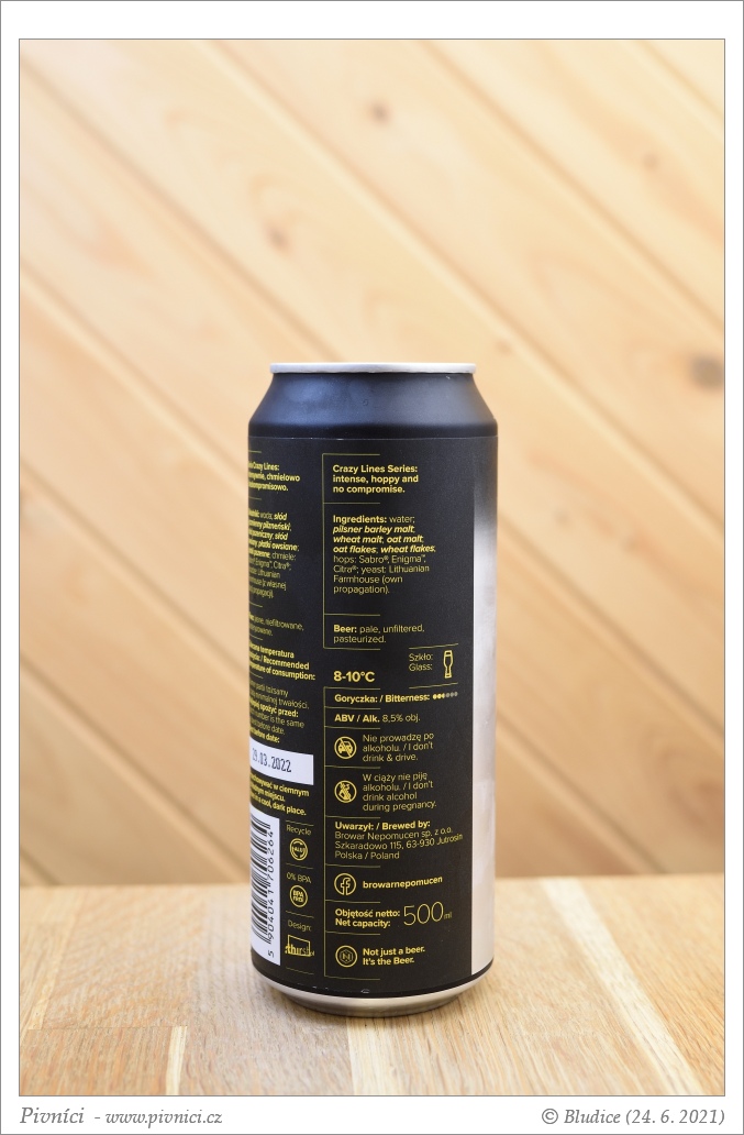 Výborná a zajímavá NEIPA. Skvěle se popíjí.Minimální trvanlivost: 29. března 2022