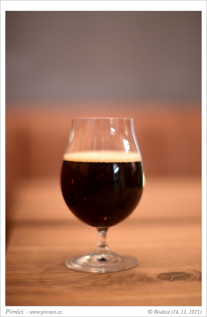 Barva tmavě mahagonová, téměř čiré. Pěkná hustá poměrně stabilní pěna světle béžové barvy.Vůně (3 - dobré):