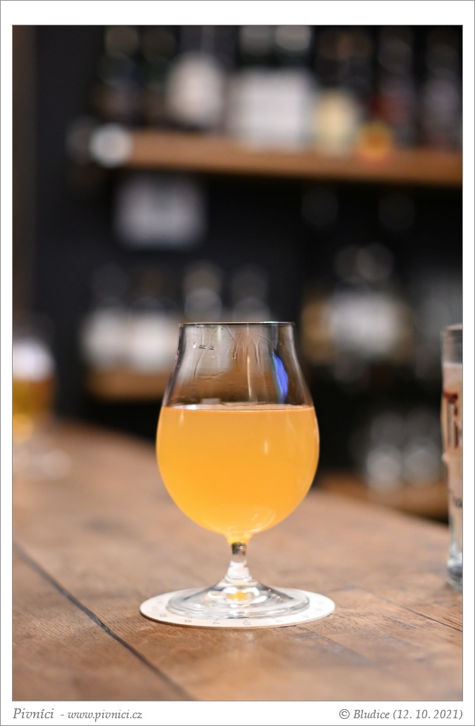 Zlatá barva, středně až více zakalené. Nižší světlá pěna, hned mizí.Vůně (3,5 - velmi dobré):