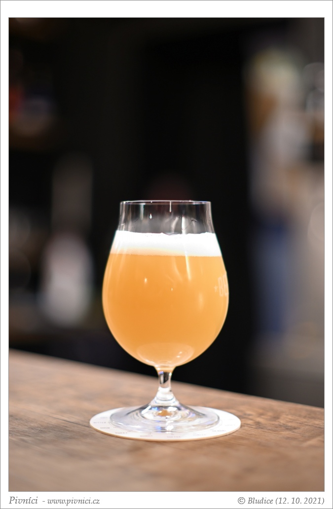 Nižší jemný říz, spíše vyšší plnost. V chuti sladové, se spíše nižší hořkostí, s jemnou nakyslostí a tóny tropického ovoce (mango, ananas), kokosu a broskví. Doznívání je sladové, jemně nakyslé, s tóny kokosu, tropického ovoce (mango, ananas) a broskví. Jemná struktura.Celkový dojem (8 - výborné pivo):