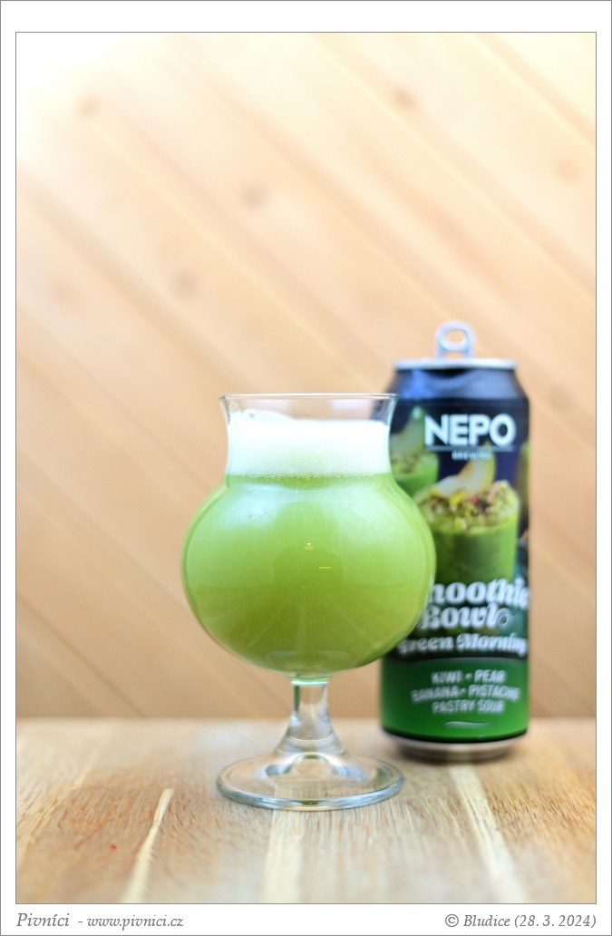 Svítivě zelená barva, velmi zakalené. Slušná světle zelená barva, celkem drží.Vůně (3 - dobré):