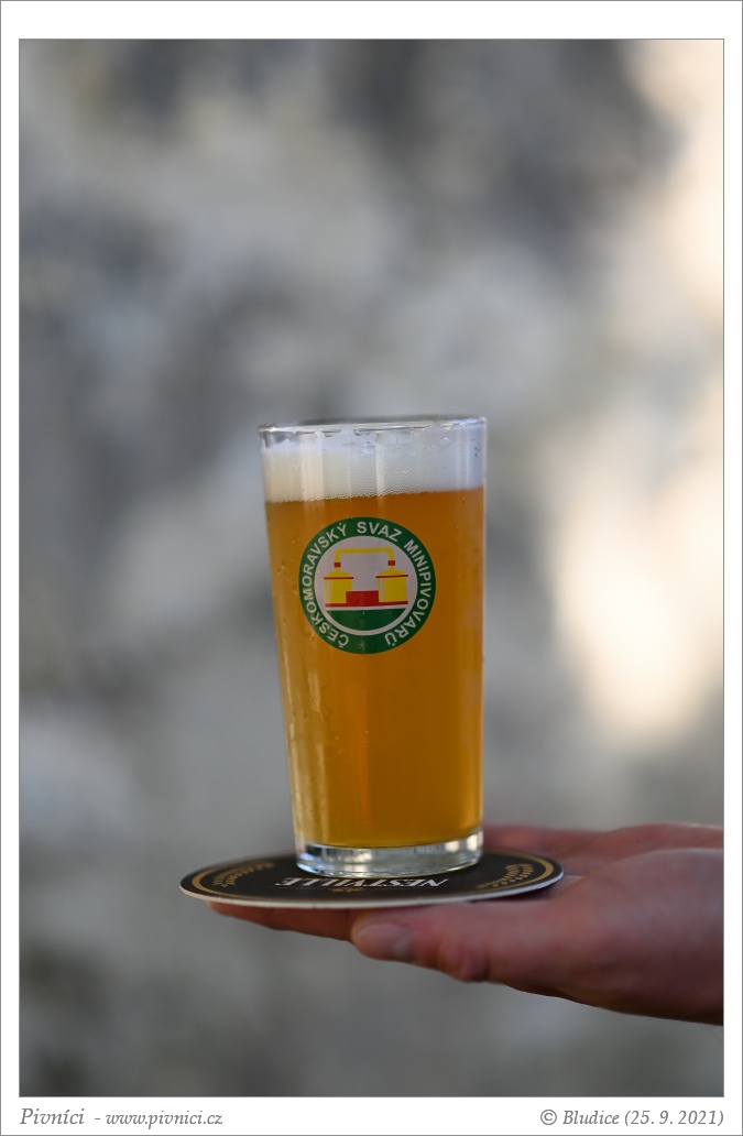 Barva zlatá, lehce zakalené. Pěkná hustá stabilní pěna.Vůně (2 - průměr):
