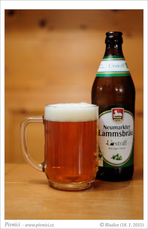 Tmavší zlatá barva, čiré, slušná bílá pěna, celkem drží.Vůně (2 - průměr):