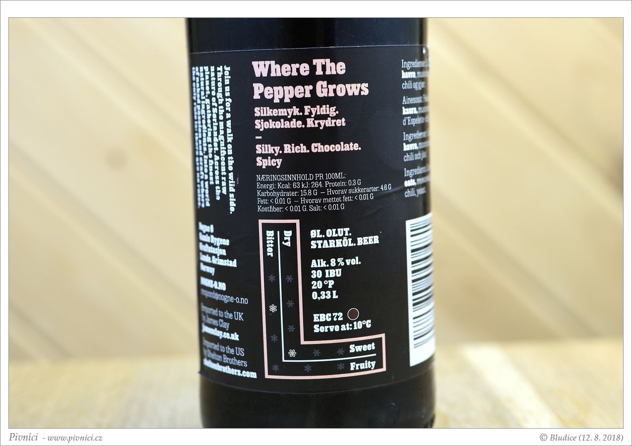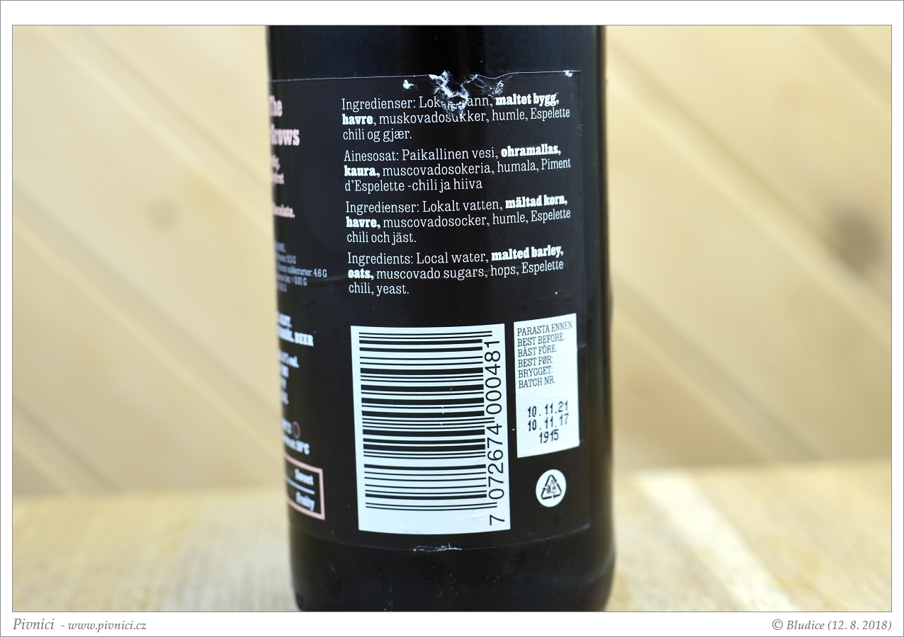 Celkem fajn silný stout, ale chilli v něm není moc harmonické.Lahvováno: 10. listopadu 2017