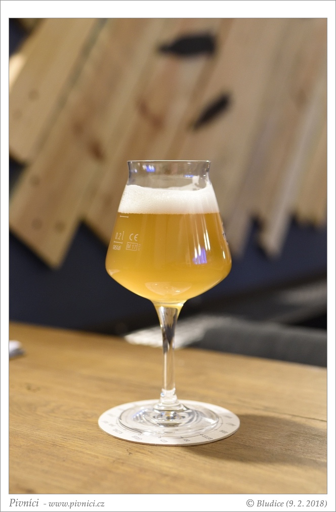 Barva světle zlatá, zakalené. Pěkná hustá poměrně stabilní pěna.Vůně (3 - dobré):