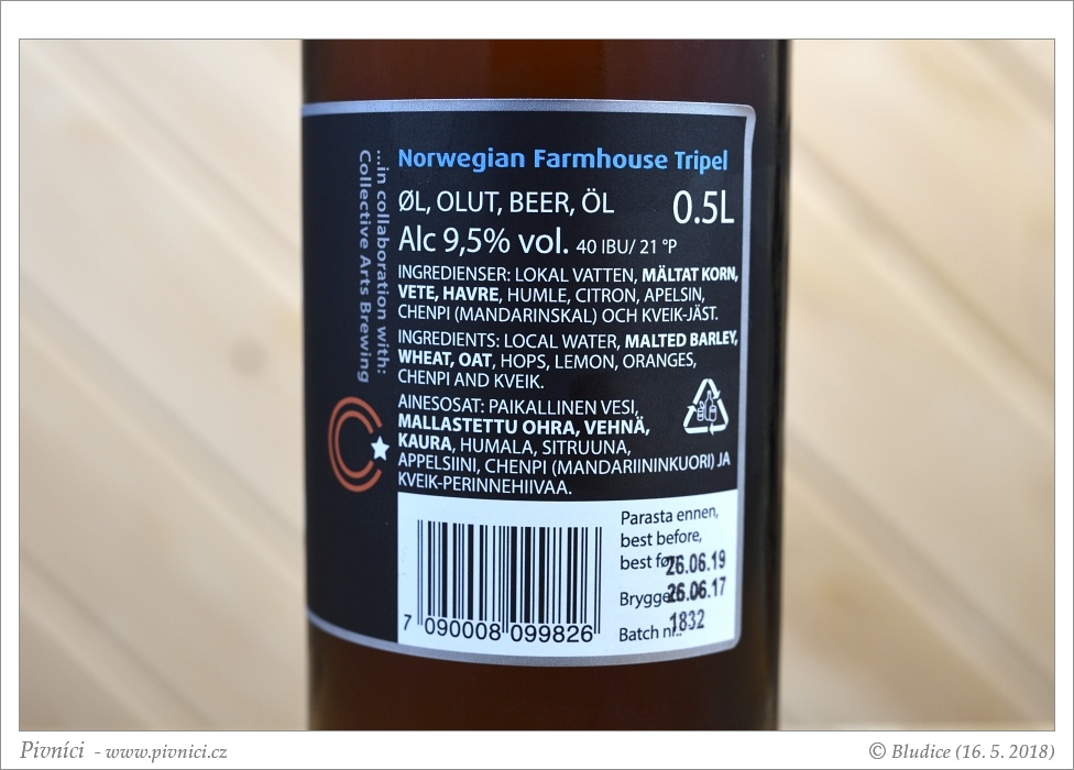 Hodně kořeněné pivo, zároveň ovocné, tak trochu divočina. Dobře se popíjí.Lahvováno: 26. června 2017