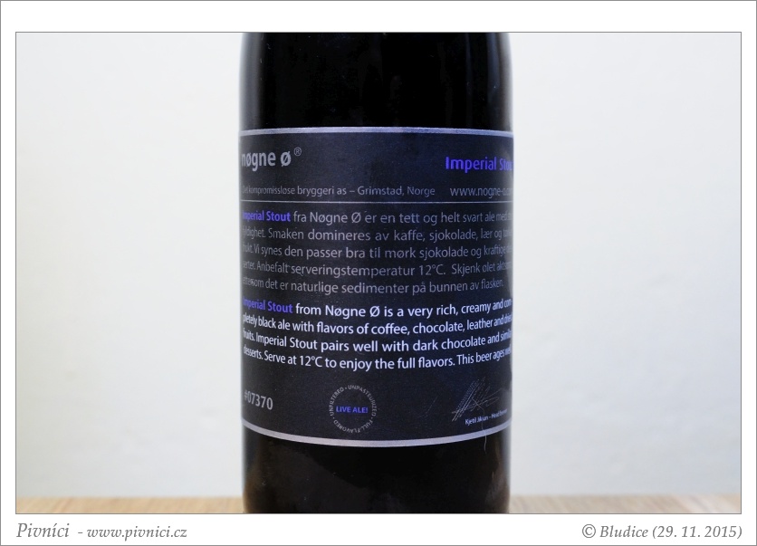 Výrazný a velmi chutný Imperial Stout. Dubový sud se projevuje jen lehce, není tak výrazný, jak někdy v podobných pivech bývá.Sledujte Pivníky