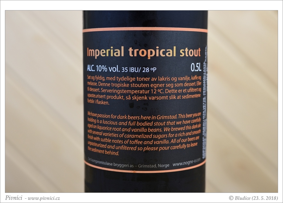 Chutný silný stout, sladší a výrazně lékořicový. Výborně se popíjí.Minimální trvanlivost: 30. listopadu 2018