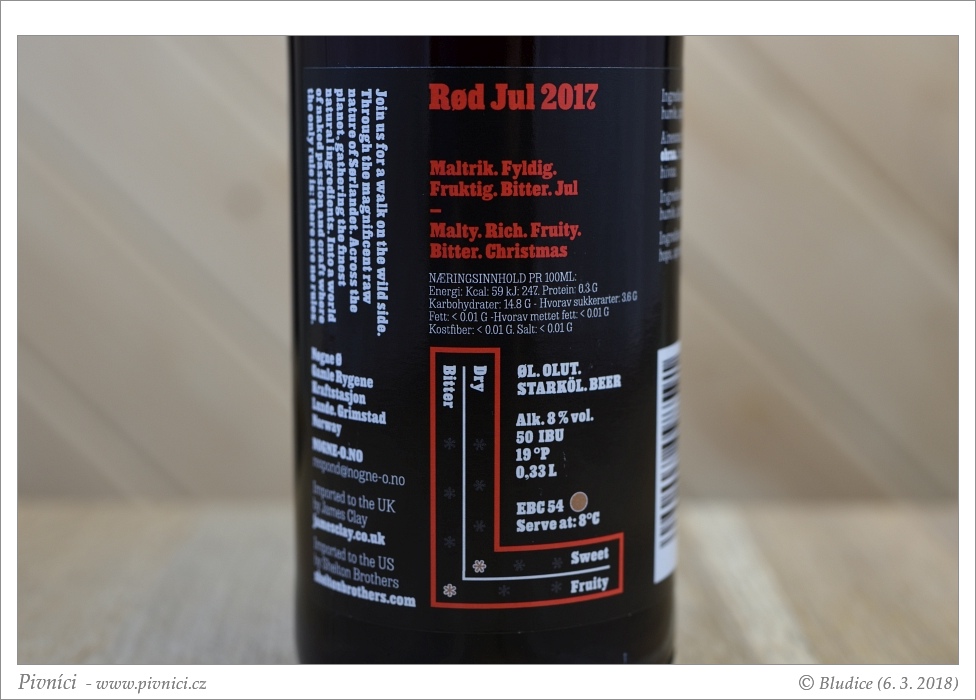 Chutné pivo s dlouhým dozníváním, velmi dobře se popíjí.Lahvováno: 29. srpna 2017
