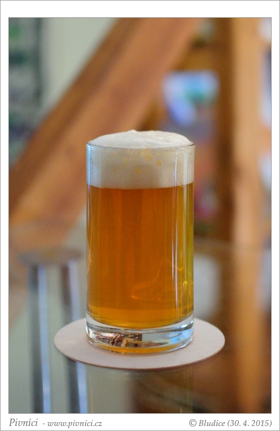 Barva zlatá, velmi lehce zakalené. Pěkná hustá stabilní pěna.Vůně (3,5 - velmi dobré):