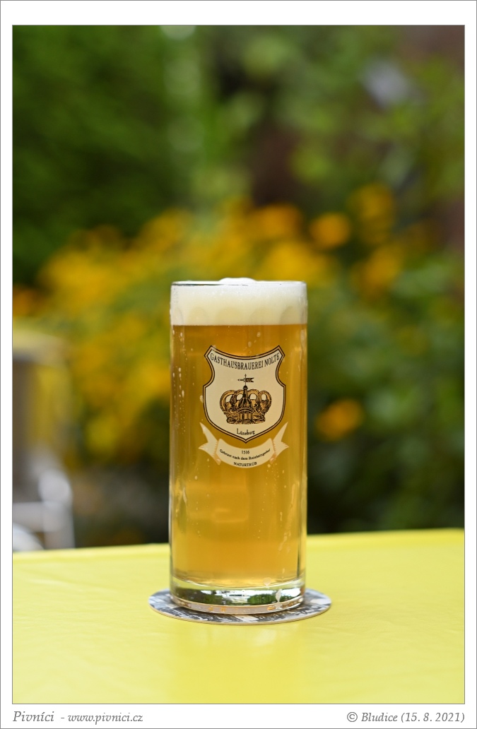 Zlatá barva, téměř čiré. Pěkná světlá pěna, dobře drží.Vůně (2,5 - lehce nadprůměr):