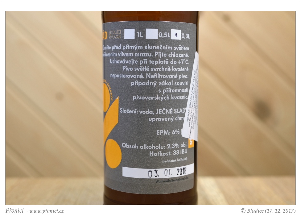 Divné a špatně pitelné pivo.Minimální trvanlivost: 3. ledna 2018