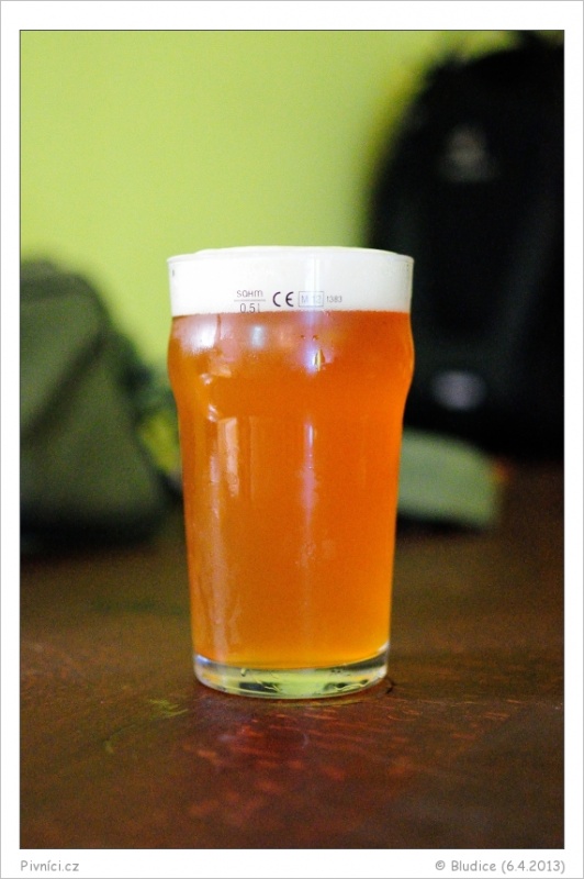 Jantarová barva, více zakalené, slušná bílá pěna.Vůně (4 - výborné):