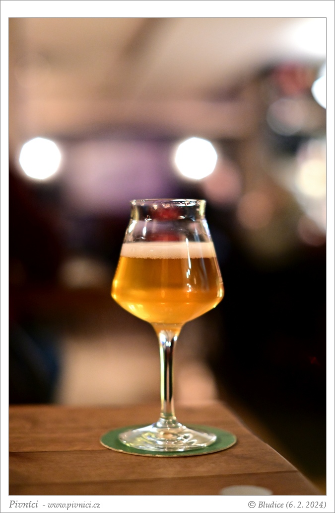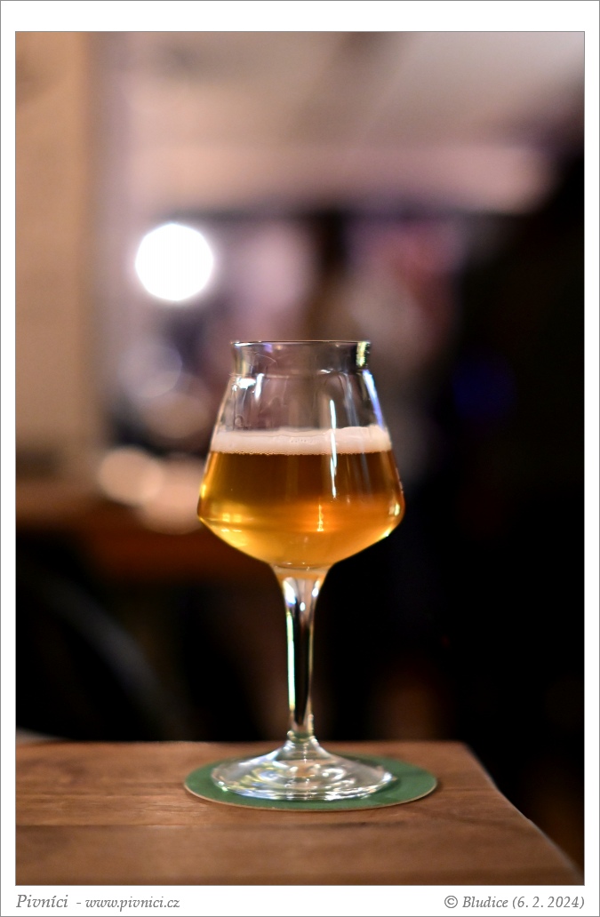 Tmavě zlatá barva, lehce zakalené. Pěkná světlá pěna, dobře drží.Vůně (4 - výborné):