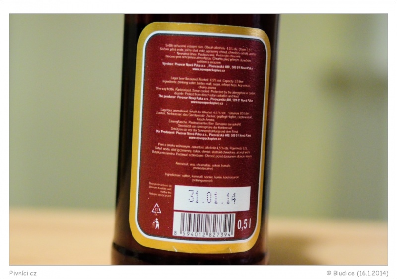 Nedobré pivo, špatně pitelné.Minimální trvanlivost: 31. 1. 2014