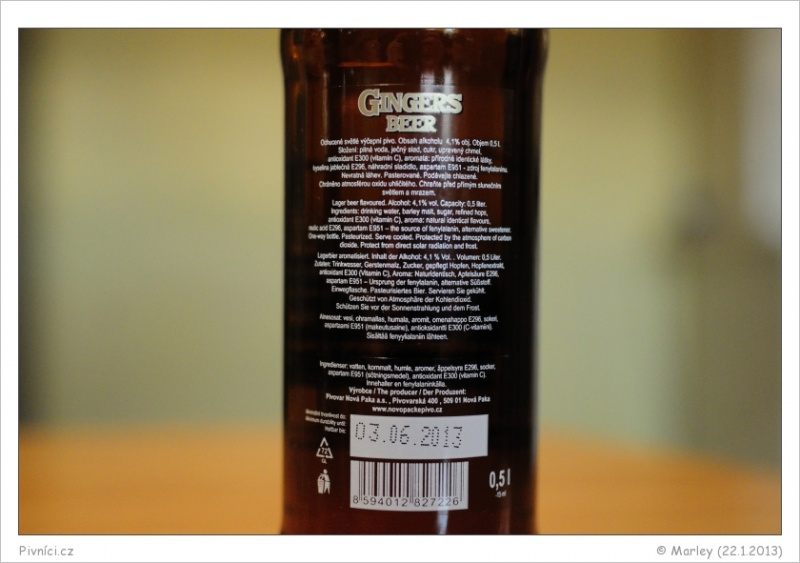 Zázvor je takový nic moc extraktový a celkově spolu se sladkostí úplně pivo přebíjí. Pitelnost celkem špatná. Ale asi mohlo být ještě horší…Minimální trvanlivost. 3. 6. 2013