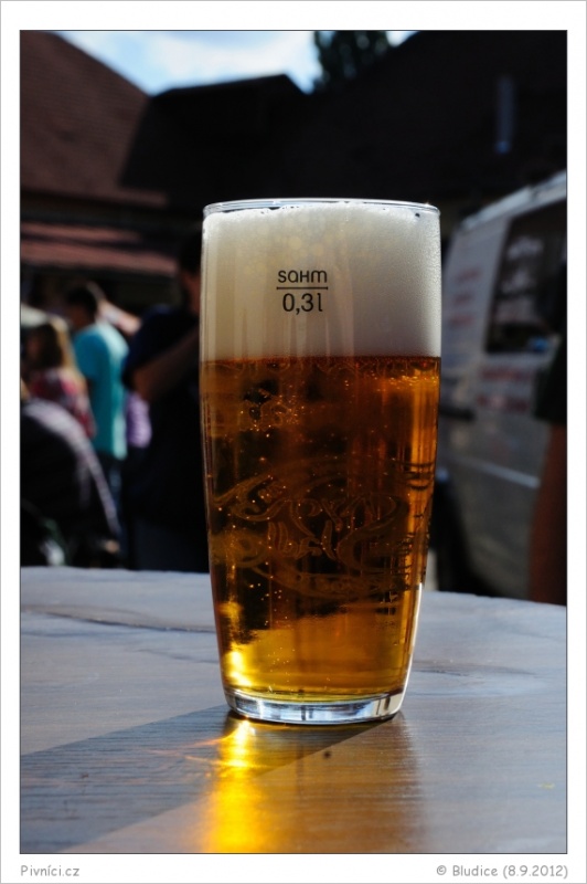 Zlatá barva, čiré, slušná bílá pěna, pěkně drží, lehce kroužkuje.Vůně (2 - průměr):