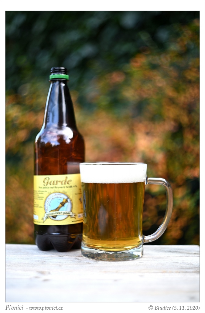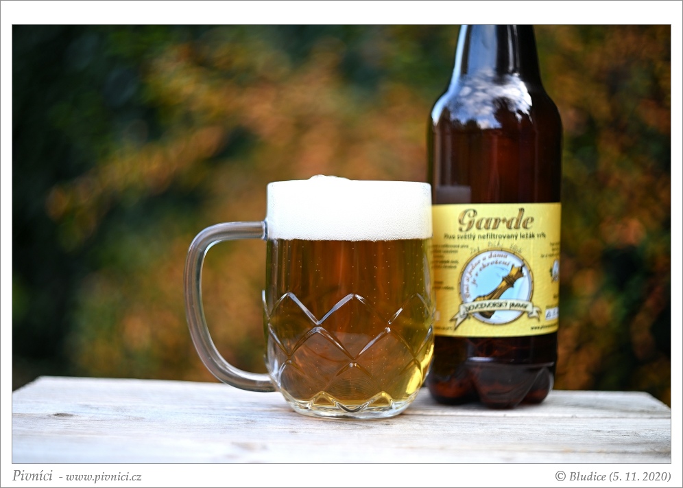Zlatá barva, čiré. Pěkná světlá pěna, dobře drží.Vůně (1,5 - nedobré):