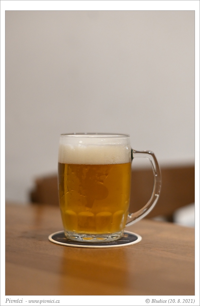 Zlatá barva, lehce zakalené. Pěkná světlá pěna, dobře drží.Vůně (3 - dobré):