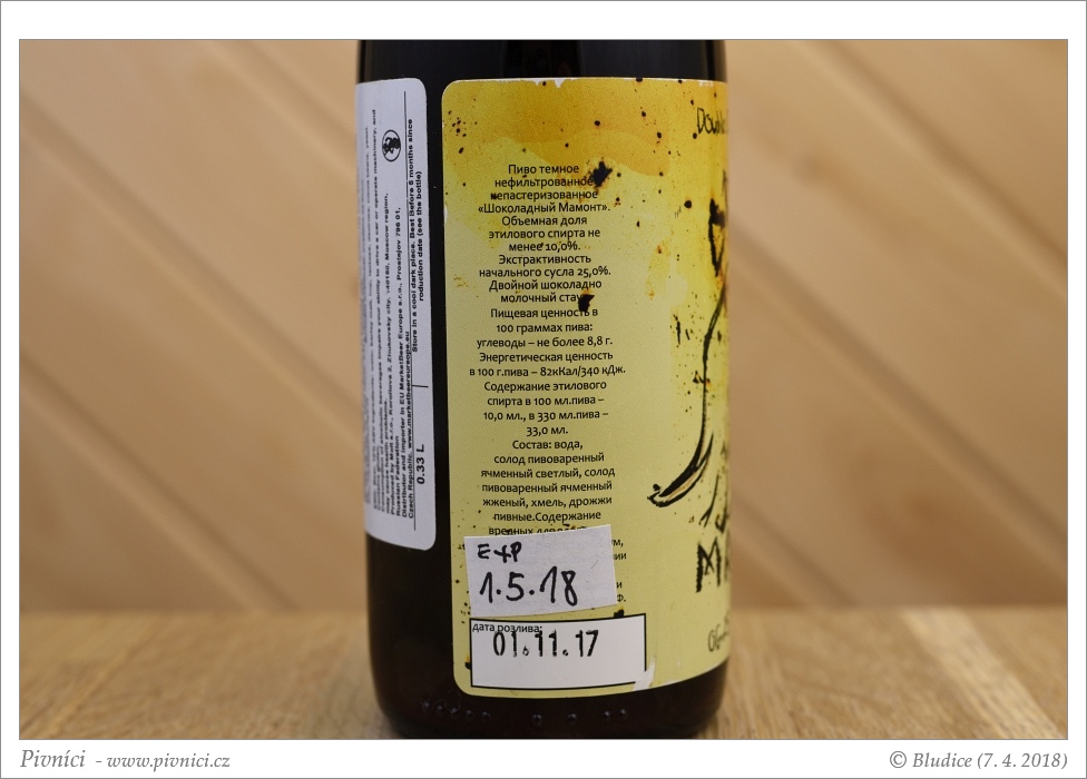 Chutná čokoládová líbivka s dlouhým dozníváním a krémovou strukturou. Výborně se popíjí.Lahvováno: 1. listopadu 2017