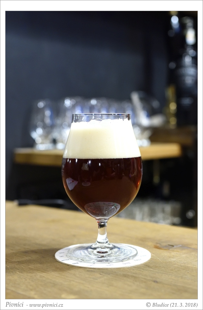 Barva velmi tmavě měděná, lehce zakalené. Pěkná hustá stabilní pěna. Kroužkuje.Vůně (3 - dobré):