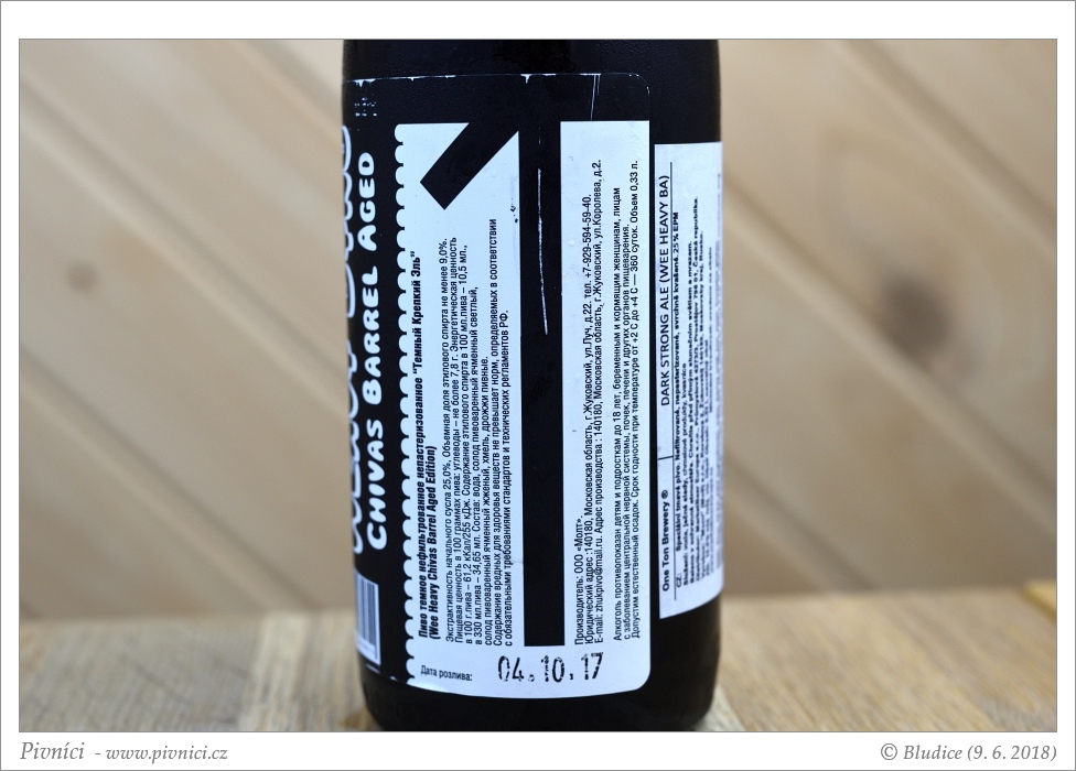Pivo s výraznějšími tóny whisky, výborně pitelné.Vzhled (2,5 - lehce nadprůměr):