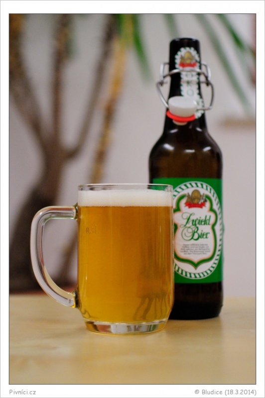 Slámová až světle zlatá barva, lehce zakalené, průměrná bílá pěna.Vůně (1,5 - nedobré):
