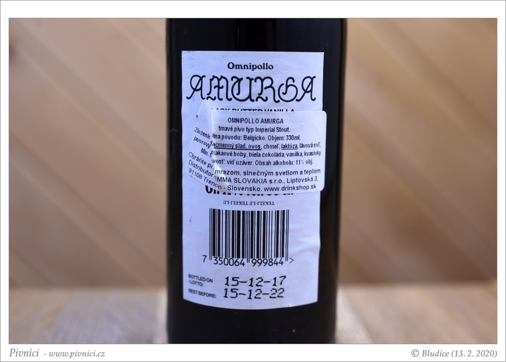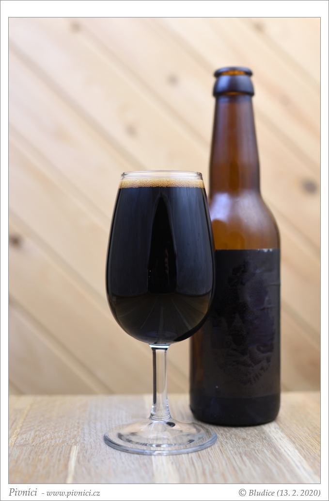 Ebenová až úplně černá barva, neprůhledné (ale zdá se čiré). Slušná béžová pěna, průměrně drží.Vůně (4 - výborné):