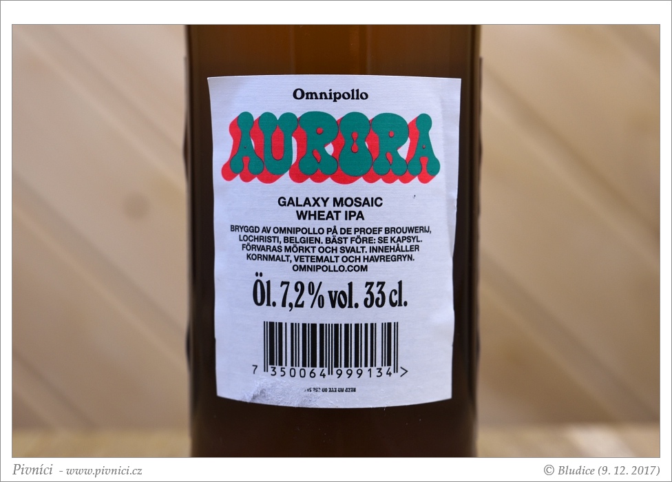 Barva slámová, lehce zakalené. Pěkná hustá poměrně stabilní pěna.Vůně (3 - dobré):
