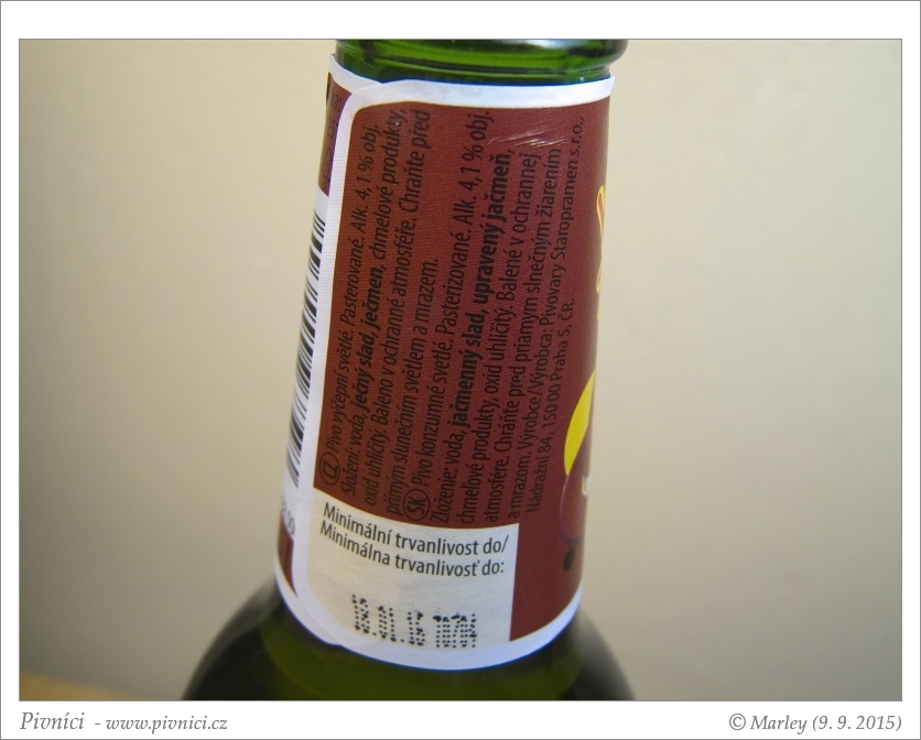 Sotva průměrně pitelné prázdnější pivo.Minimální trvanlivost: 18. ledna 2016