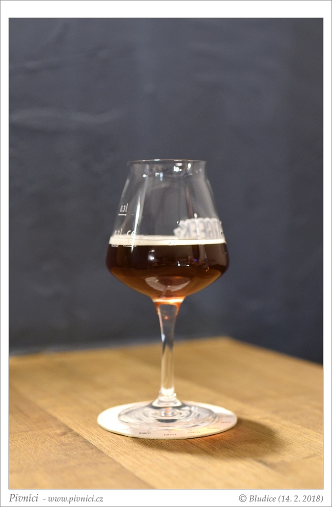 Temně měděná barva s rubínovým nádechem, velmi lehce zakalené. Nižší světlá pěna, průměrně drží.Vůně (3 - dobré):