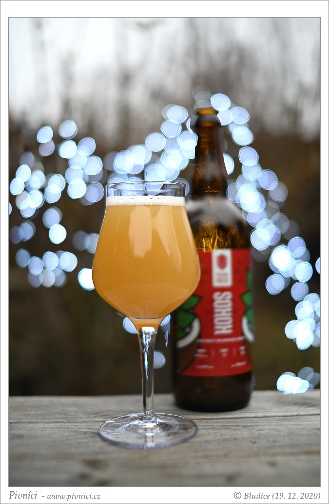 Světle zlatá barva, více zakalené. Pěkná světlá pěna, slušně drží.Vůně (2,5 - lehce nadprůměr):
