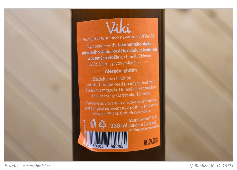 Prázdnější a výrazně citrusová IPA. Nějaké doladění by užila, ale pije se celkem dobře.Minimální trvanlivost: 1. září 2018