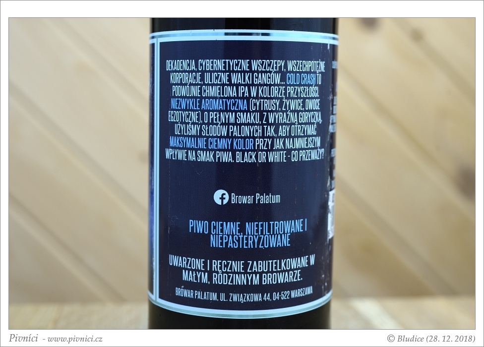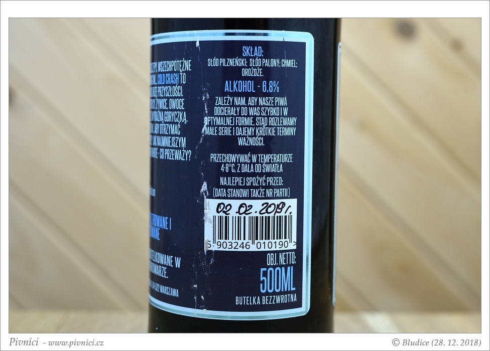 Chutná jemná černá IPA. Velmi dobře se popíjí.Minimální trvanlivost: 2. února 2019